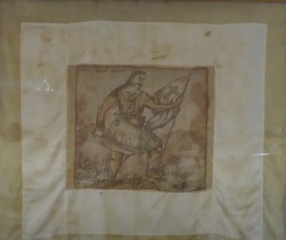 25η Μαρτίου 1821 - Το λάβαρο του Μάρκου Μπότσαρη στη Ζωσιμαία Βιβλιοθήκη Ιωαννίνων